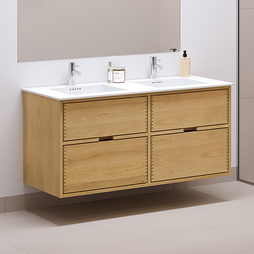 120 cm Licht eikenhout Just Wood Badmeubel met 4 lades - Dubbele uitsparing