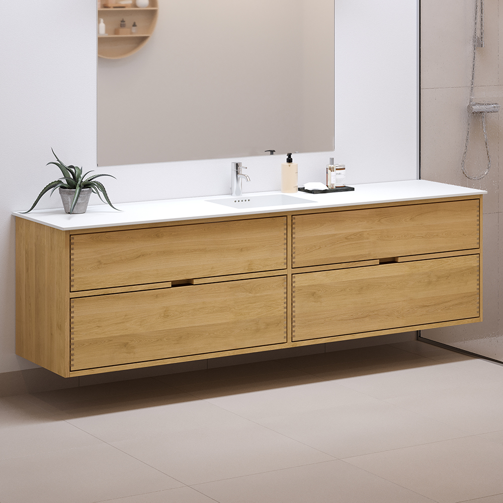 200 cm Licht geïsoleerd Just Wood badmeubel met 4 laden - Dubbele uitsparing